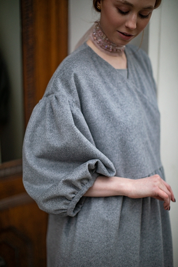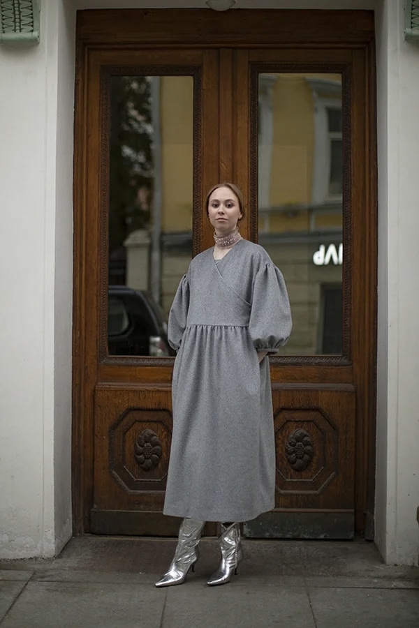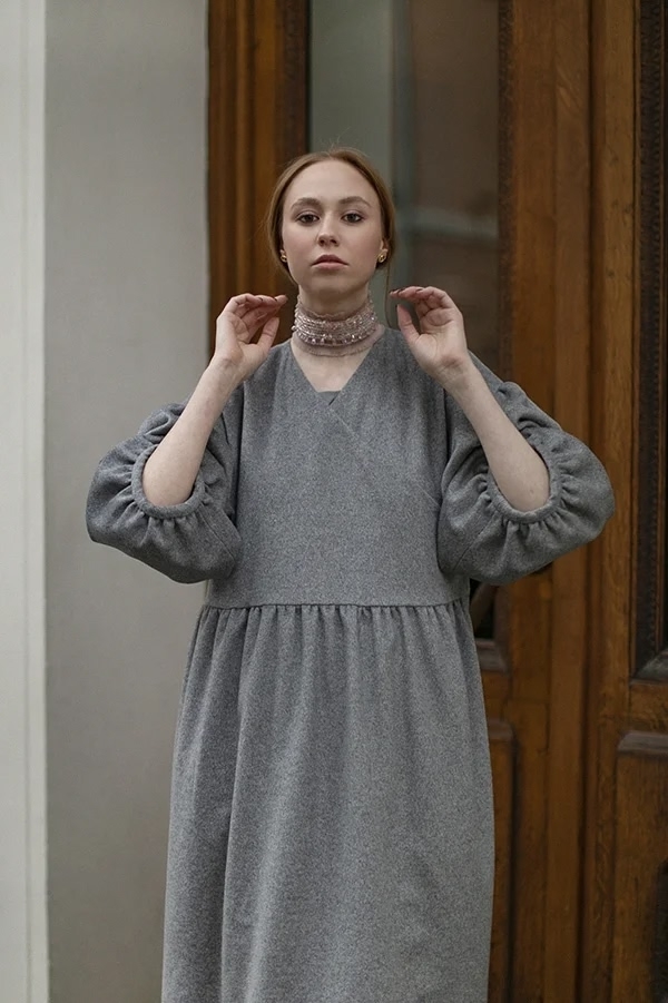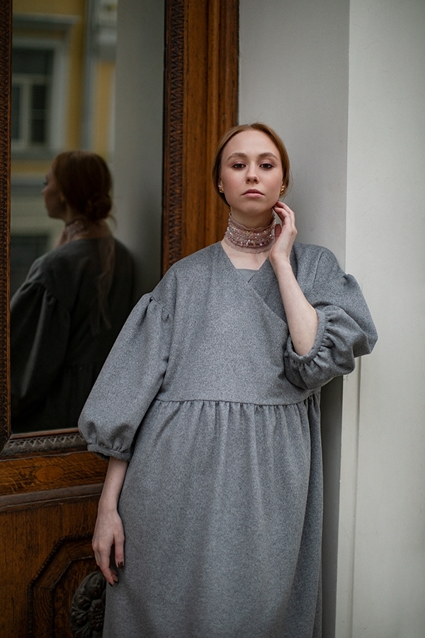 Perhaps our coat made of gray textured wool will become the outerwear that will replace the boring classic coat in your wardrobe. Flowing, romantic and... practical! You can put it on a dress when leaving the theater, and be elegant and feminine, you can wear it with jeans and a T-shirt, and the usual image will change beyond recognition, or you can just wrap yourself up beautifully in it, sitting on the veranda of a cafe.. The lining is made of leopard crepe satin. And if you put on a headdress, cover your neck with a scarf or snood and add long gloves, you can wear it up to minus 5C.