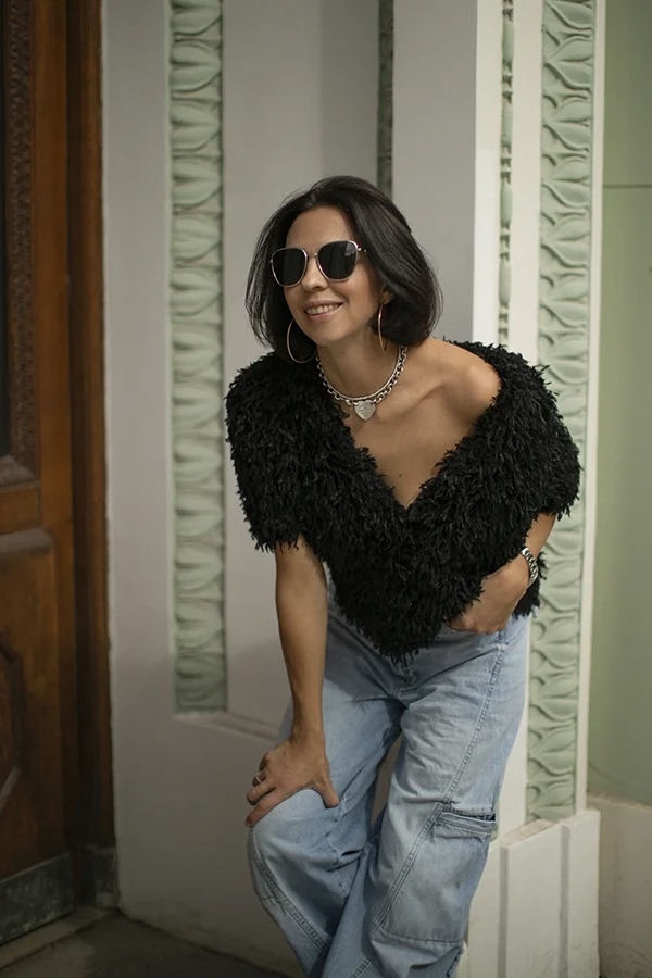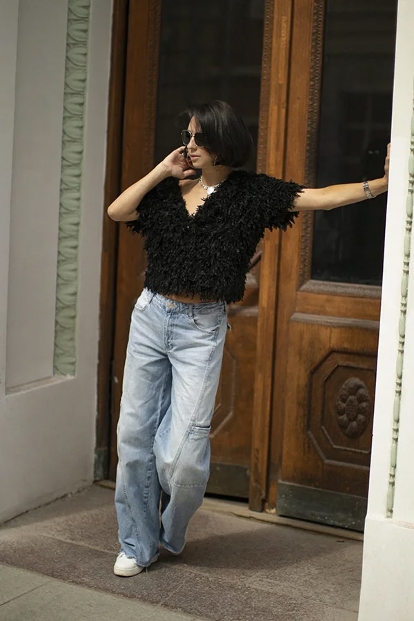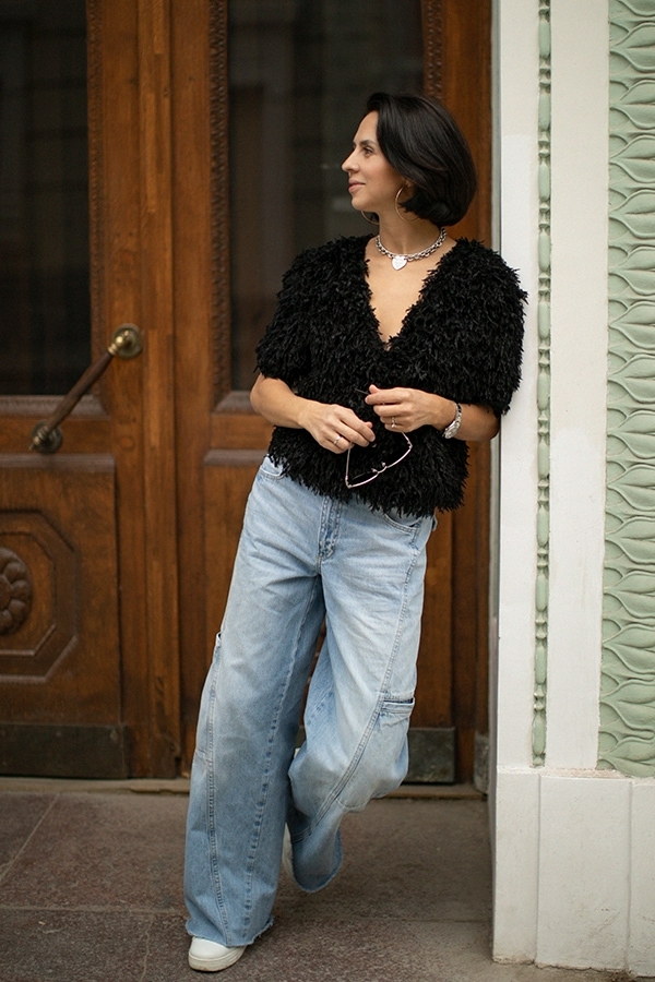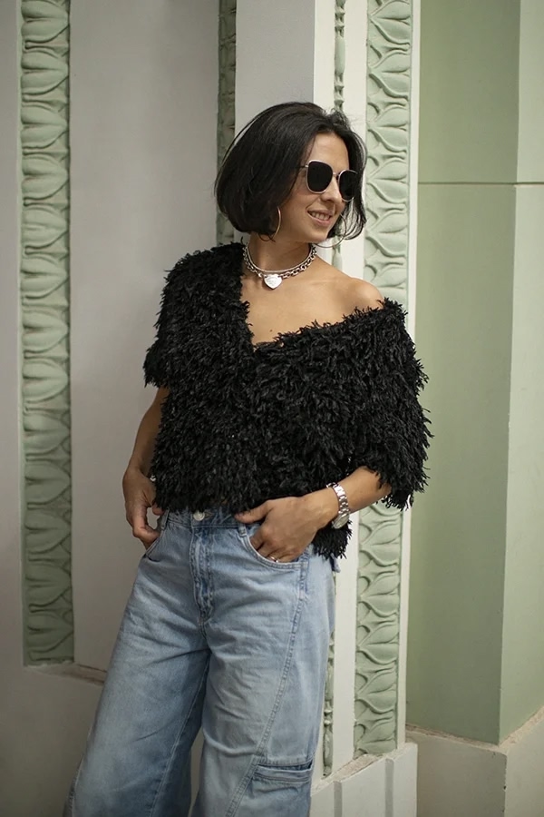 Our little but very fluffy cardigan. The artificial feathers on it are so artfully made that they look like real ones. At the same time, the PUSHISTIK can be washed in warm water as many times as you want, it will look just like new! It is fastened with transparent buttons.